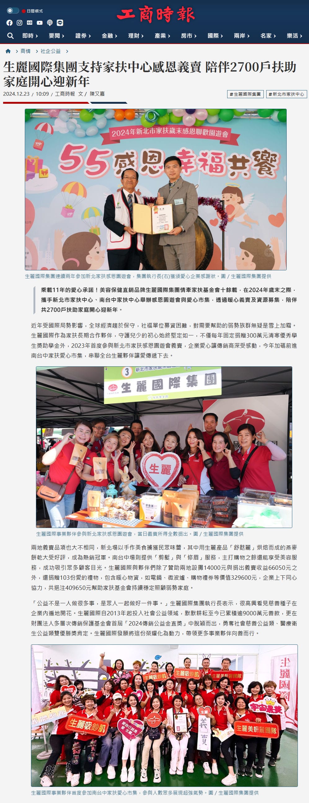 生麗國際集團支持家扶中心感恩義賣 陪伴2700戶扶助家庭開心迎新年