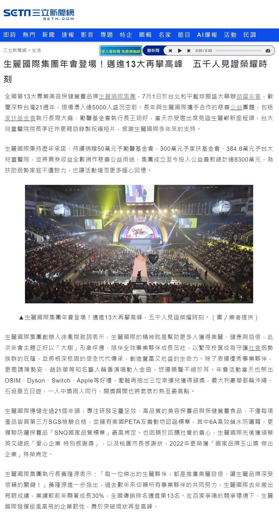 2023-7-5 三立新聞【生麗國際集團年會登場!邁進13大再攀高峰 五千人見證榮耀時刻】