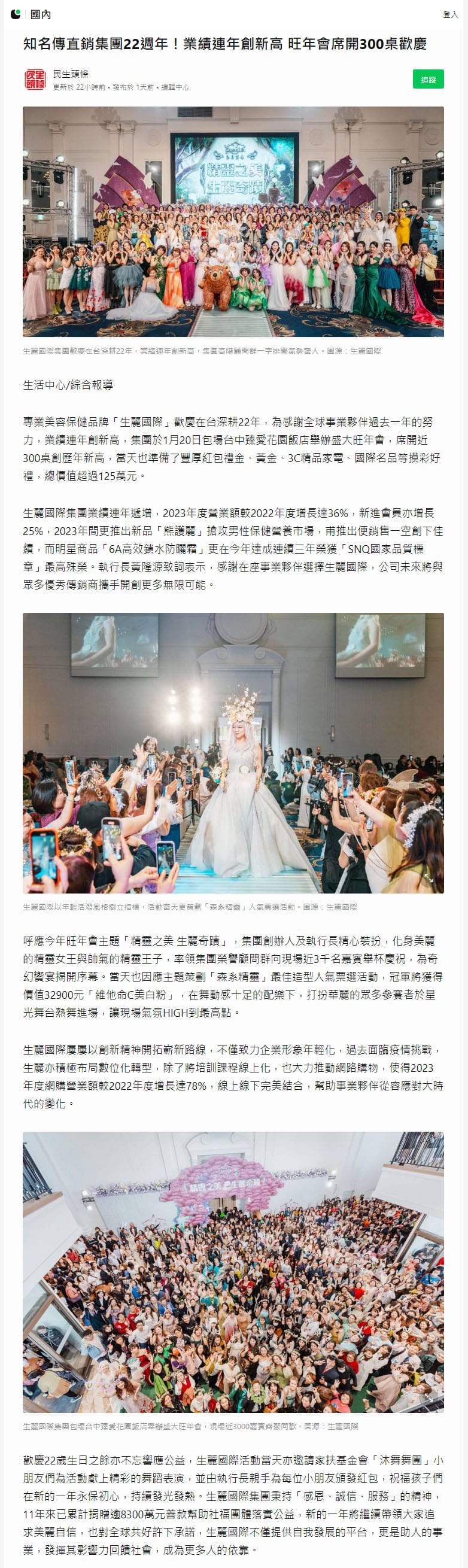 2024-1-24 LINE TODAY【知名傳直銷集團22週年!業績連年創新高 旺年會席開300桌歡慶】
