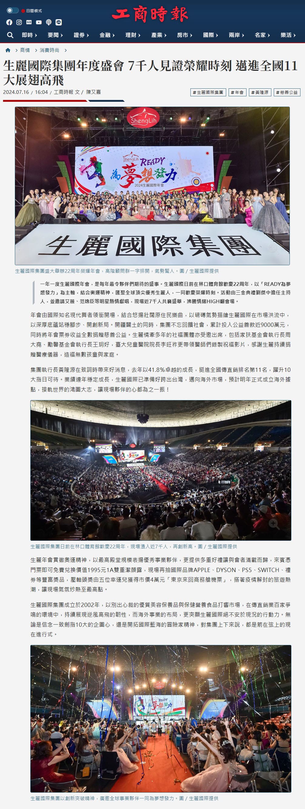 2024-7-16 工商時報【生麗國際集團年度盛會 7千人見證榮耀時刻 邁進全國11大展翅高飛】
