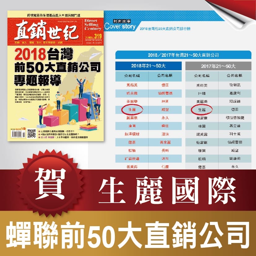 直銷世紀 雜誌319期「2018蟬聯台灣前50大直銷公司」