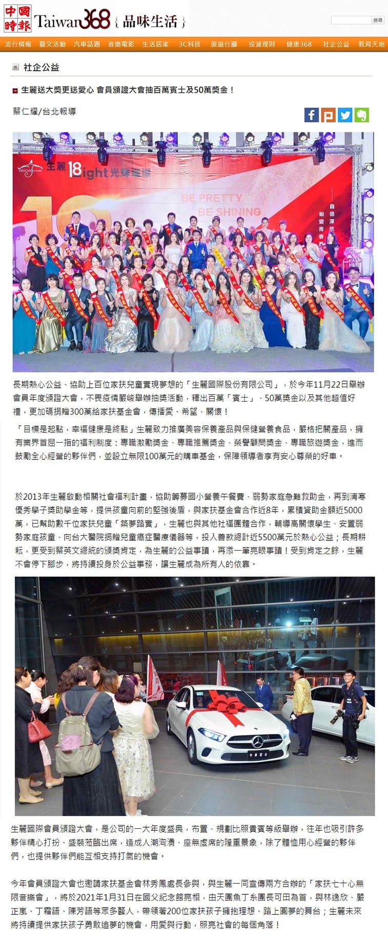 中國時報【生麗送大獎更送愛心 會員頒證大會抽百萬賓士及50萬獎金!】
