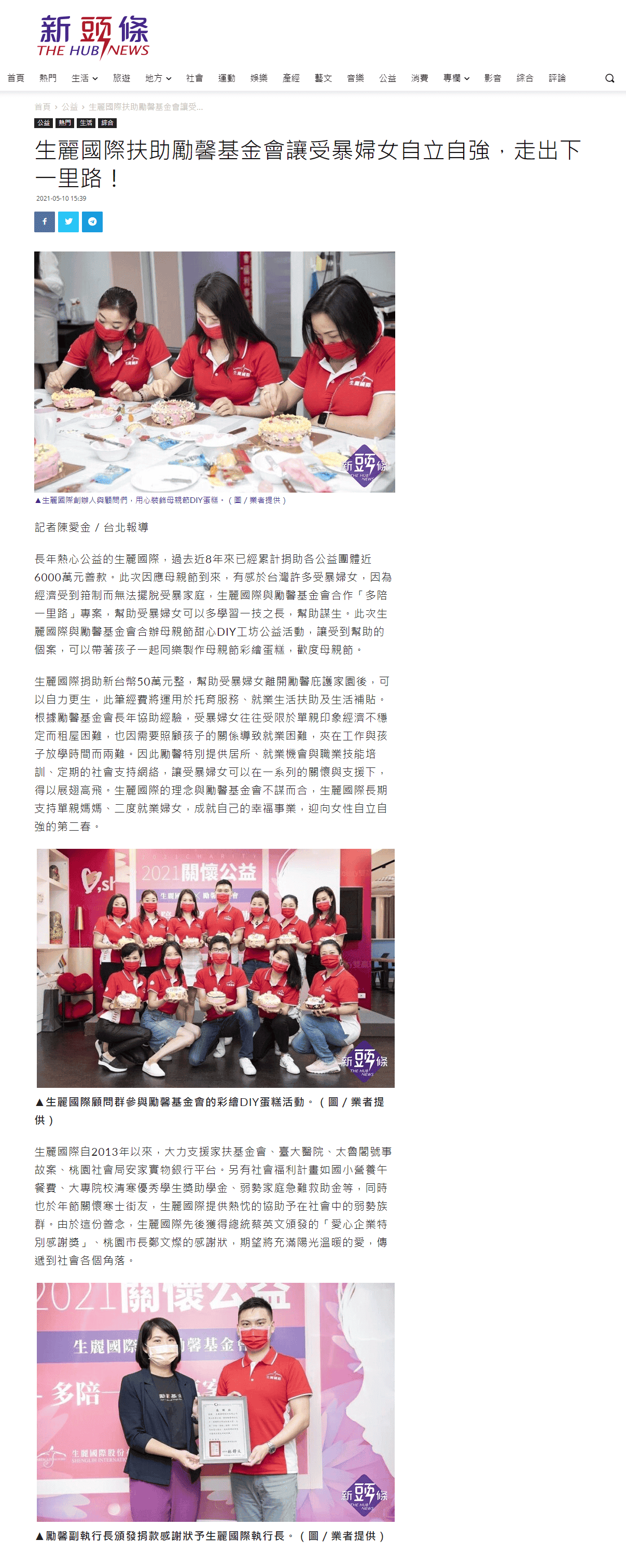 2021-5-10 新頭條新聞【生麗國際扶助勵馨基金會讓受暴婦女自立自強 走出下一里路】