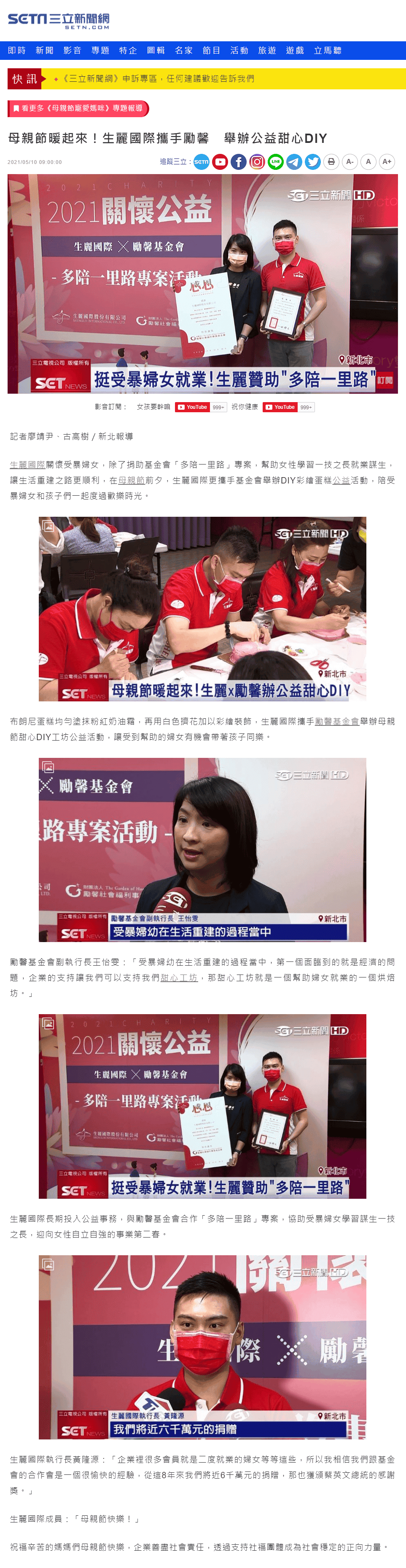 2021-5-10 三立新聞【母親節暖起來!生麗國際攜手勵馨 舉辦公益甜心DIY】
