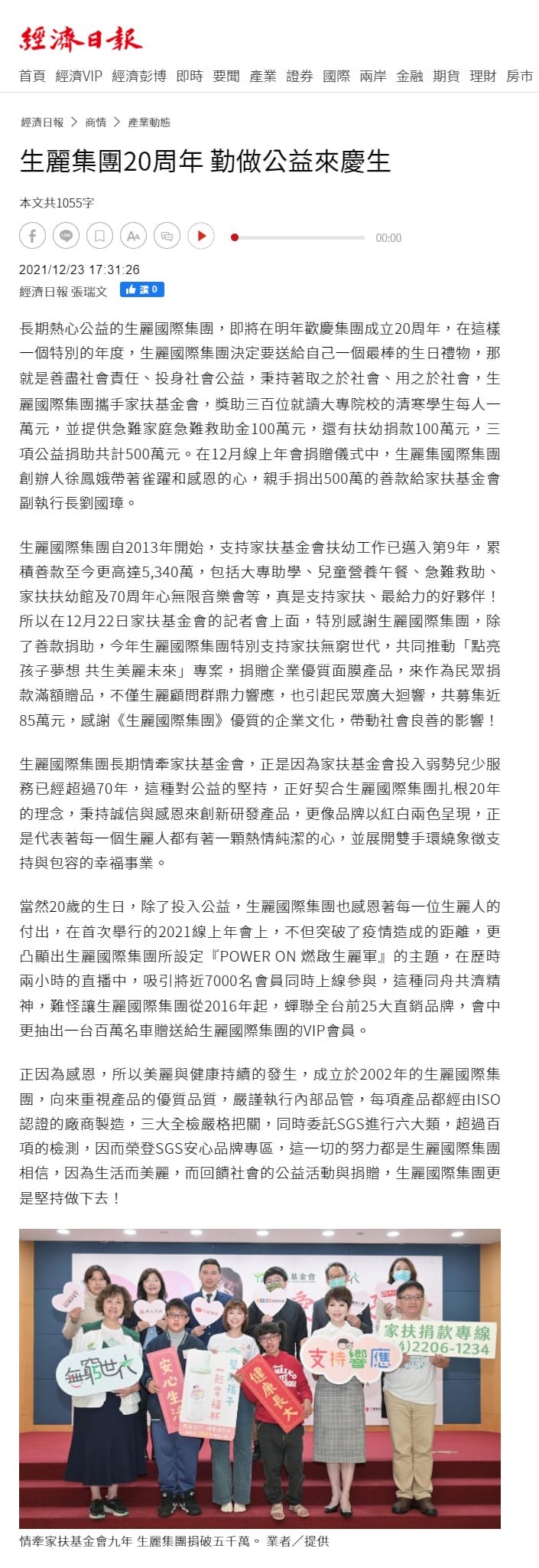 2021-12-23 經濟日報【生麗集團20周年 勤做公益來慶生】
