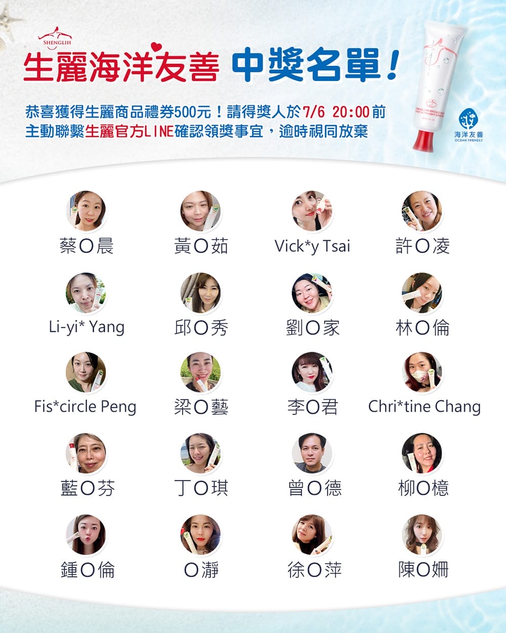 分享愛海宣言 幸運名單公布✌