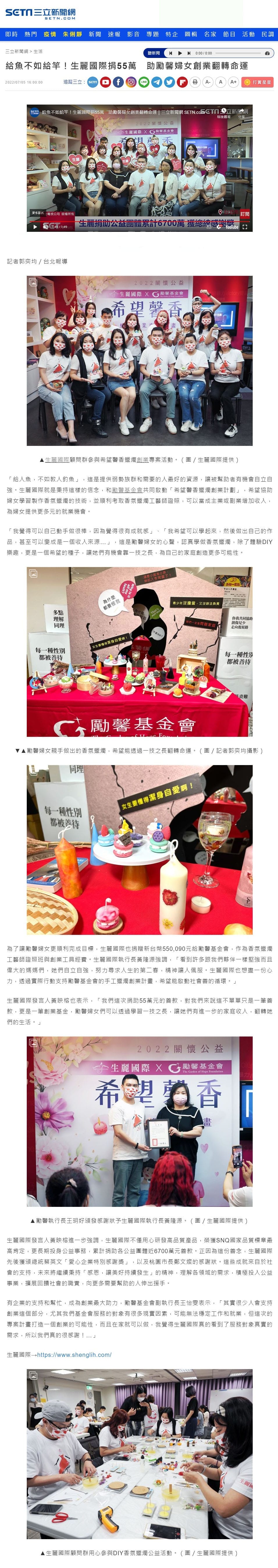 2022-7-5 三立新聞【給魚不如給竿!生麗國際捐55萬 助勵馨婦女創業翻轉命運】