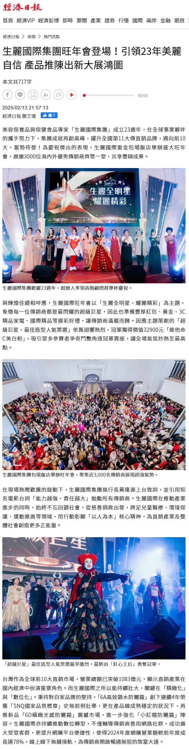 2025-2-14 經濟日報【生麗國際集團旺年會登場!引領23年美麗自信 產品推陳出新大展鴻圖】