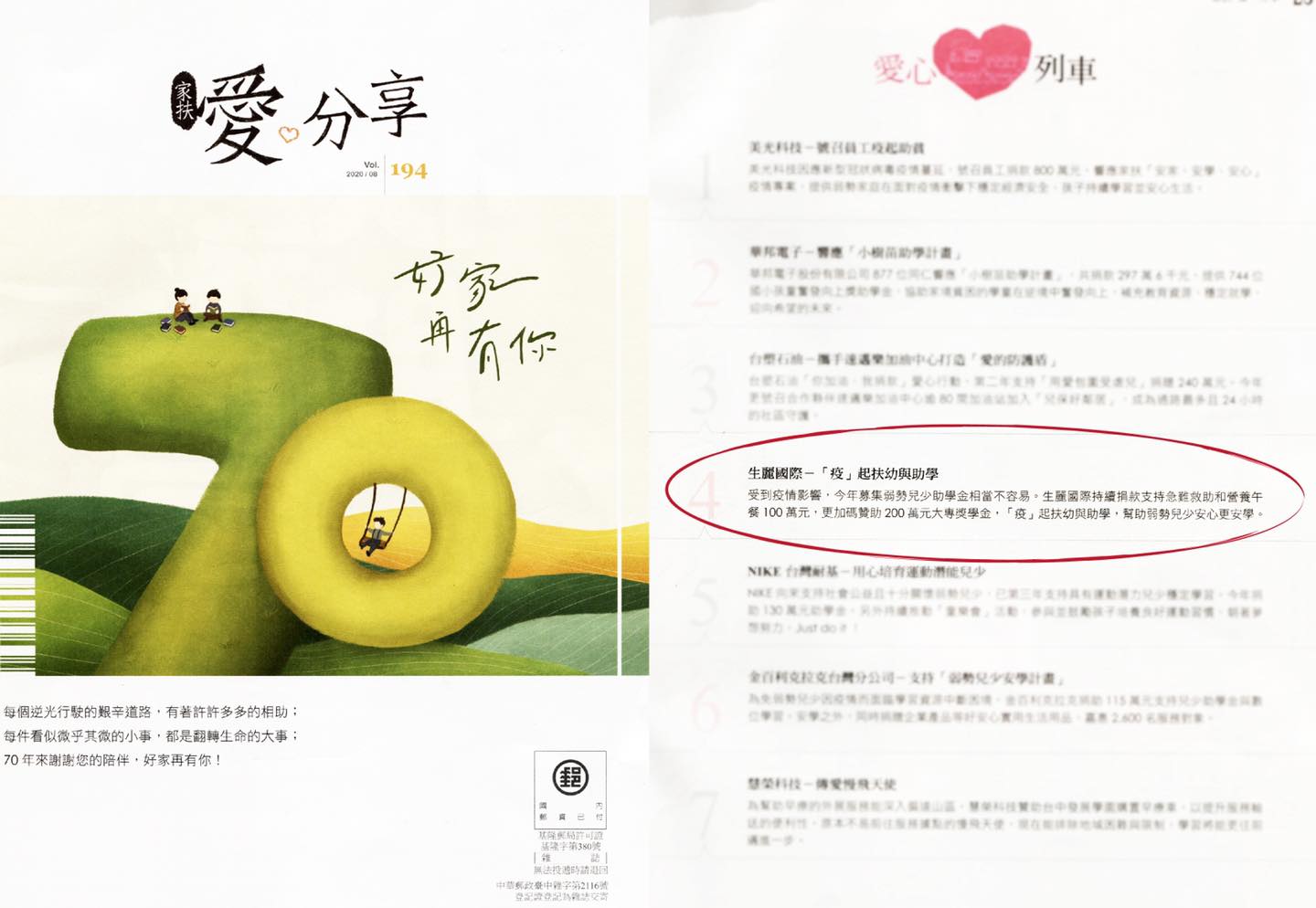 2020-8 家扶基金會 愛分享季刊194期【生麗國際-「疫」起扶幼與助學】