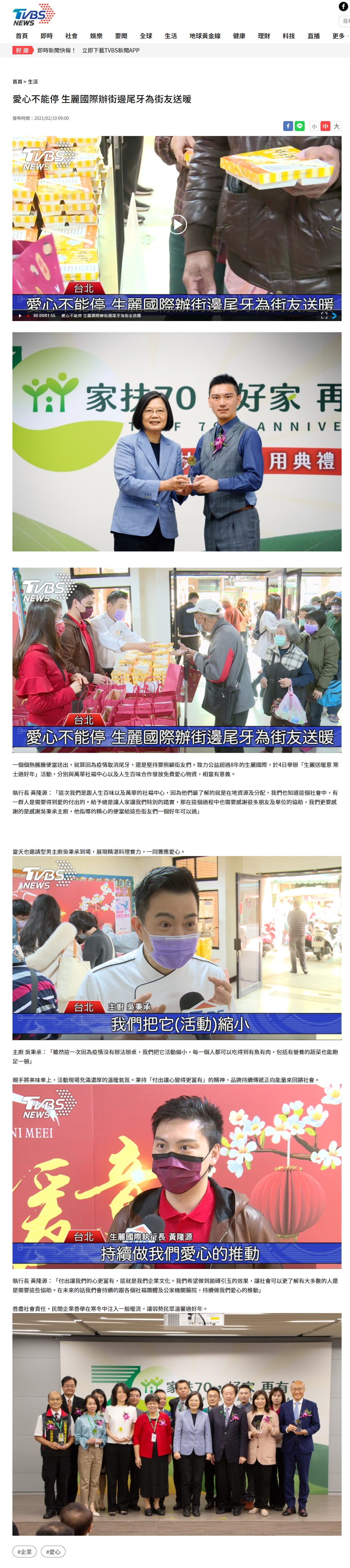2021-2-10 TVBS新聞【愛心不能停 生麗國際辦街邊尾牙為街友送暖】