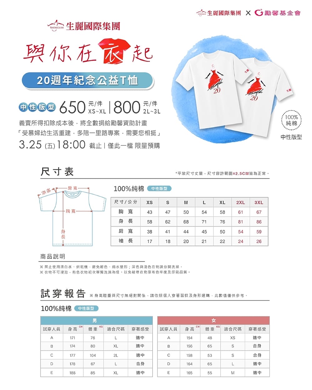 延續愛&關懷的精神,特別與勵馨基金會共同發起: