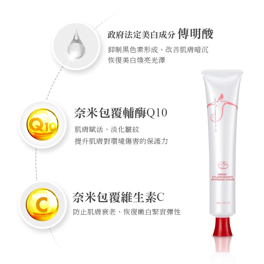 抑制黑色素形成、改善肌膚暗沉、恢復美白煥亮光澤