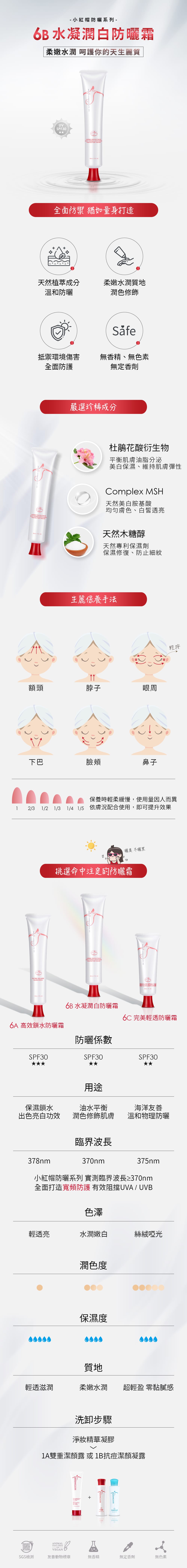 適量均勻塗抹肌膚,可重覆使用,減少陽光曝曬下造成的肌膚傷害